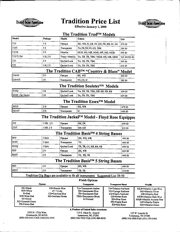 NOTE: Tradition Guitars, Inc. ONLY makes Electric Guitars and Basses. We